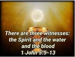 The related issue concerns John’s reference in verse 6 to Jesus “who came” or more literally “having come” – ἐλθὼν being an aorist participle that does not specify duration. We (Christians) know Jesus came to earth, but do the Spirit, water and blood testify that in some sense He is still present? – by the working of the Holy Spirit in believers’ lives, by the water of baptism and (more controversially) by His mystical presence in the species of the Eucharist? I have become clear that is the case.
